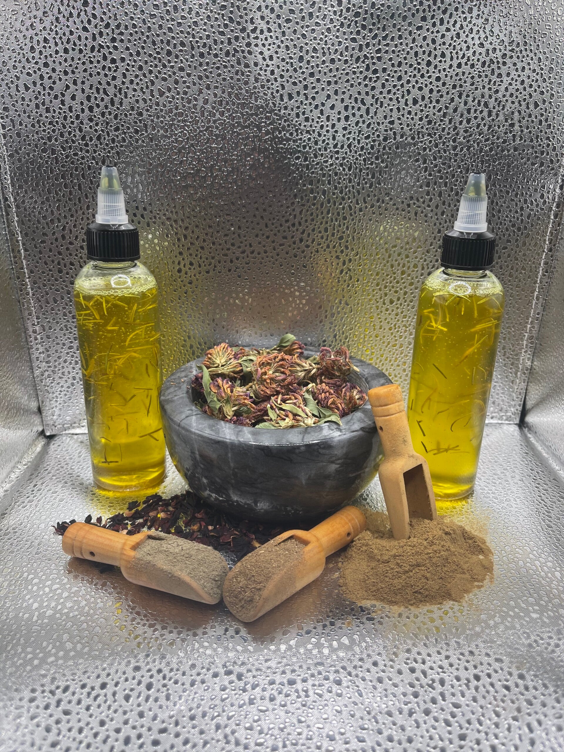 Discover our best-selling hair oil, a blend of nourishing herbs and essential oils designed to promote healthy, lustrous hair. Handcrafted in small batches, this potent elixir brings ancient wisdom to your modern hair care routine. Experience the revitalizing power of nature for your locks, carefully created to support strength and shine.